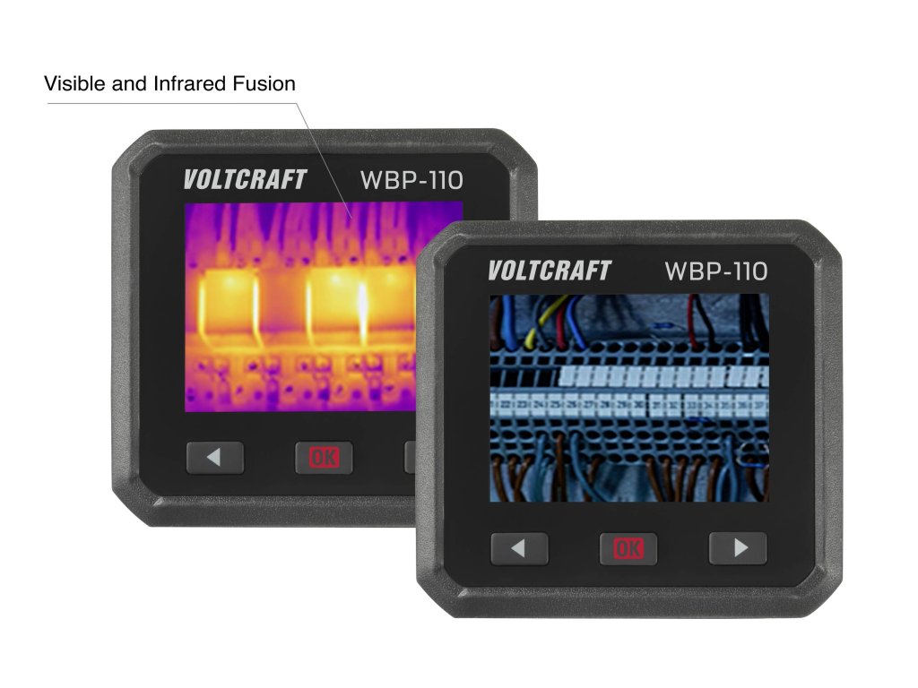 Termokamera v kapesním formátuPocket Thermal Camera VOLTCRAFT WBP-110 se vejde do každé kapsy u kalhot, ale nabízí zároveň nejmodernější techniku pro vytváření hodnotných termosnímků. Ať už na elektrických zařízeních, fasádách budov nebo v potravinářském průmyslu: Infračervená kamera umožňuje odhalení nežádoucích teplotních rozdílů, aby nedošlo k následnému poškození.Flexibilní použití a jasné výsledkyHorká nebo studená? VOLTCRAFT WBP-110 vytvoří snímky v teplotním rozsahu -20 až +550° C s termickou citlivostí 50 mK. Přitom lze snímky přesně provádět nebo vypozorovat celé plochy. Extrémní teploty se zaznamenají a v případě potřeby kamera vydá varovný signál. K vyhodnocení je k dispozici 8 barevných palet.Spolehlivé výsledky měření díky kalibraciV rámci zajišťování kvality se všechny měřicí přístroje Voltcraft® kalibrují ve výrobě dle továrních standardů. Tím je zaručena vysoká kvalita a dodržování tolerancí uvedených v technických údajích. K výrobku není vydáván certifikát.